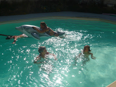 Fin d'après midi, baignade dans la piscine du gîte avec Chantal, les cousines et Lucie qui a bien grandi. De longs cheveux blonds, un sourire malicieux... trop belle ma Lucie ! Et preuve qu'elle est grande, elle nage désormais sans brassard !
